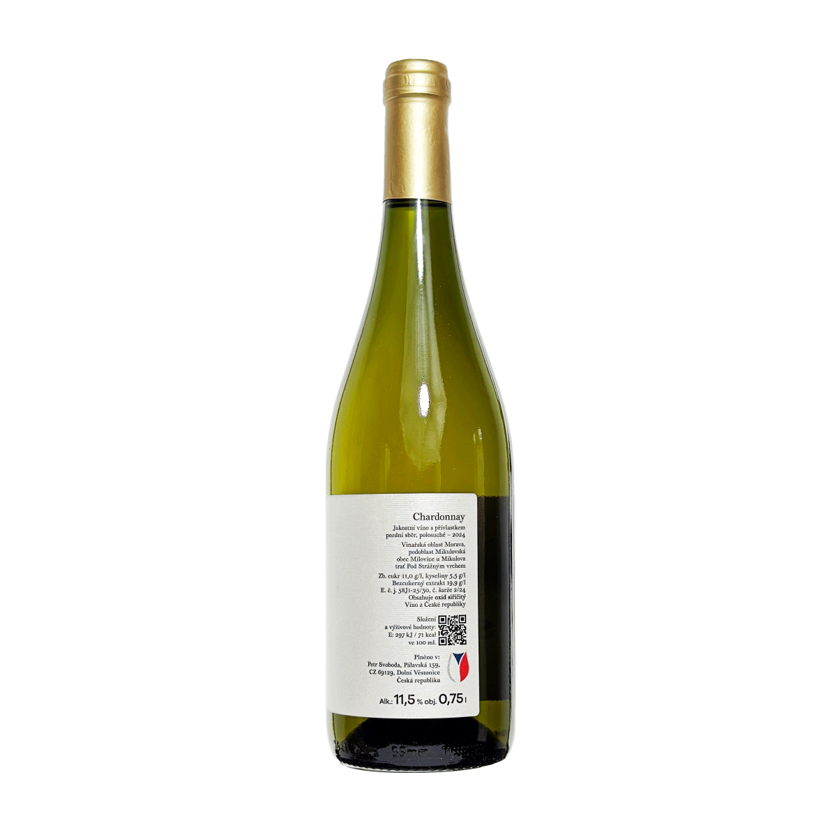Plněno vinohradníkem: Petr Svoboda, Pálavská 159, CZ 69129, Dolní Věstonice, Česká Republika